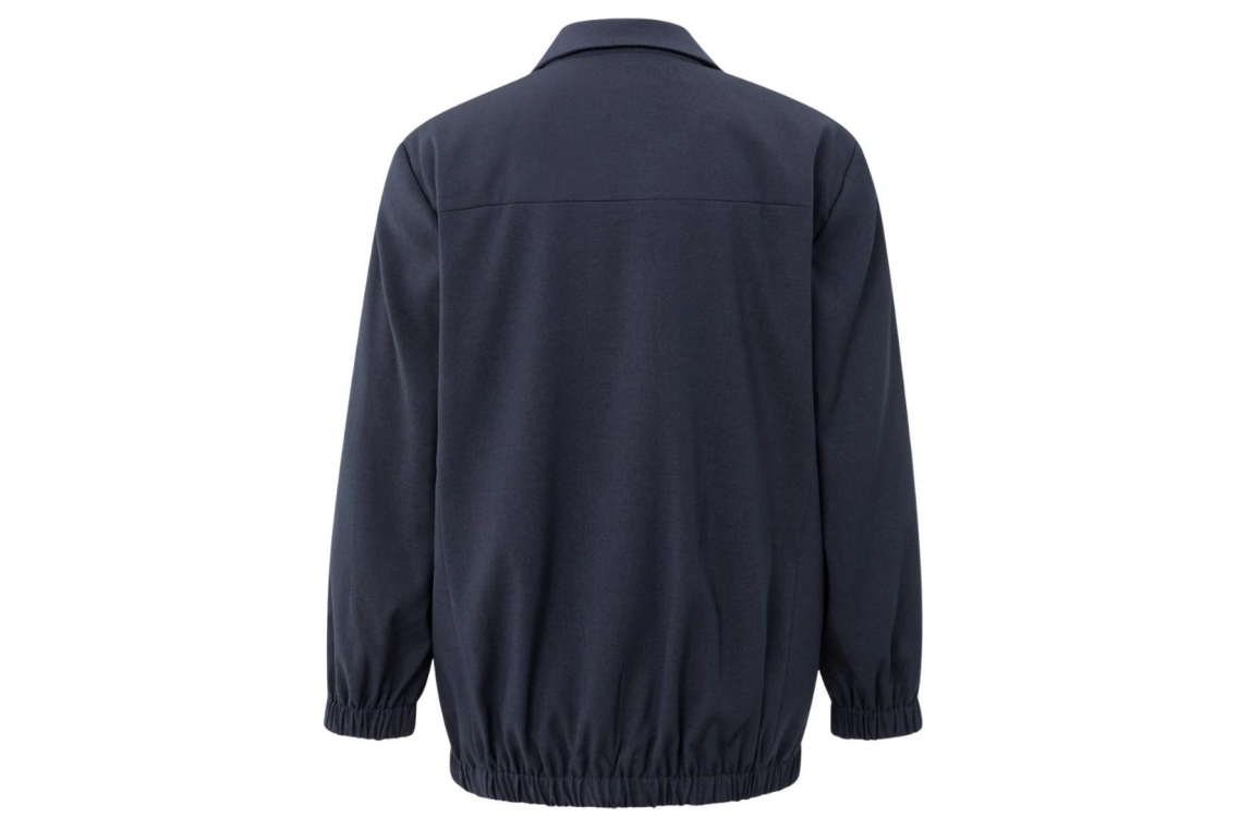 YAYA blazer 01-501071-508. Dit rechtvallende model heeft een reverskraag en lange mouwen. Deze donkerblauwe blazer van YAYA sluit aan de voorzijde door middel van een dubbele knoopsluiting en heeft een licht elastische zoom. De achterzijde van dit model is afgewerkt met subtiele details wat lijkt op een bomber-model.