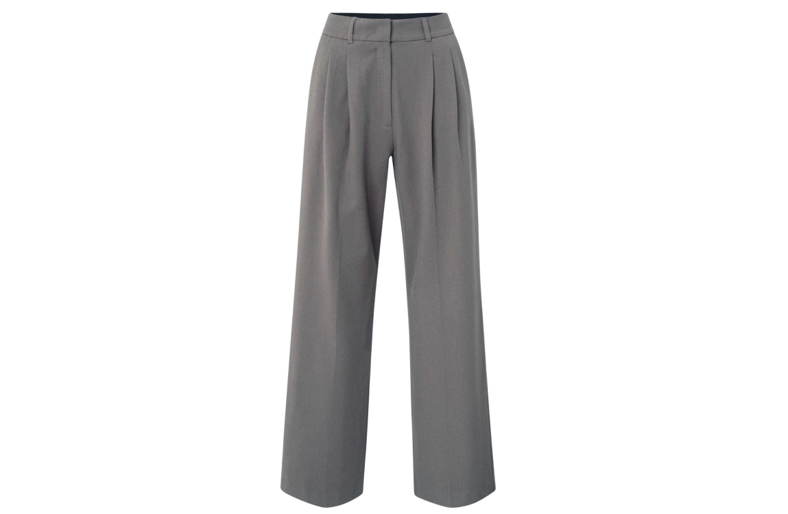 Yaya broek 01-301226-510 80307. Dit wide leg model sluit door middel van een knoop- en ritssluiting en is voorzien van ceintuurlussen. Deze donkergrijze broek van Yaya is voorzien van twee steekzakken aan de voorzijde en twee paspelzakken aan de achterzijde. Het model is afgewerkt met plooidetails en is uitgevoerd in geweven stof.