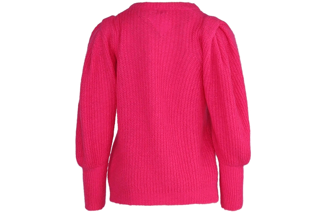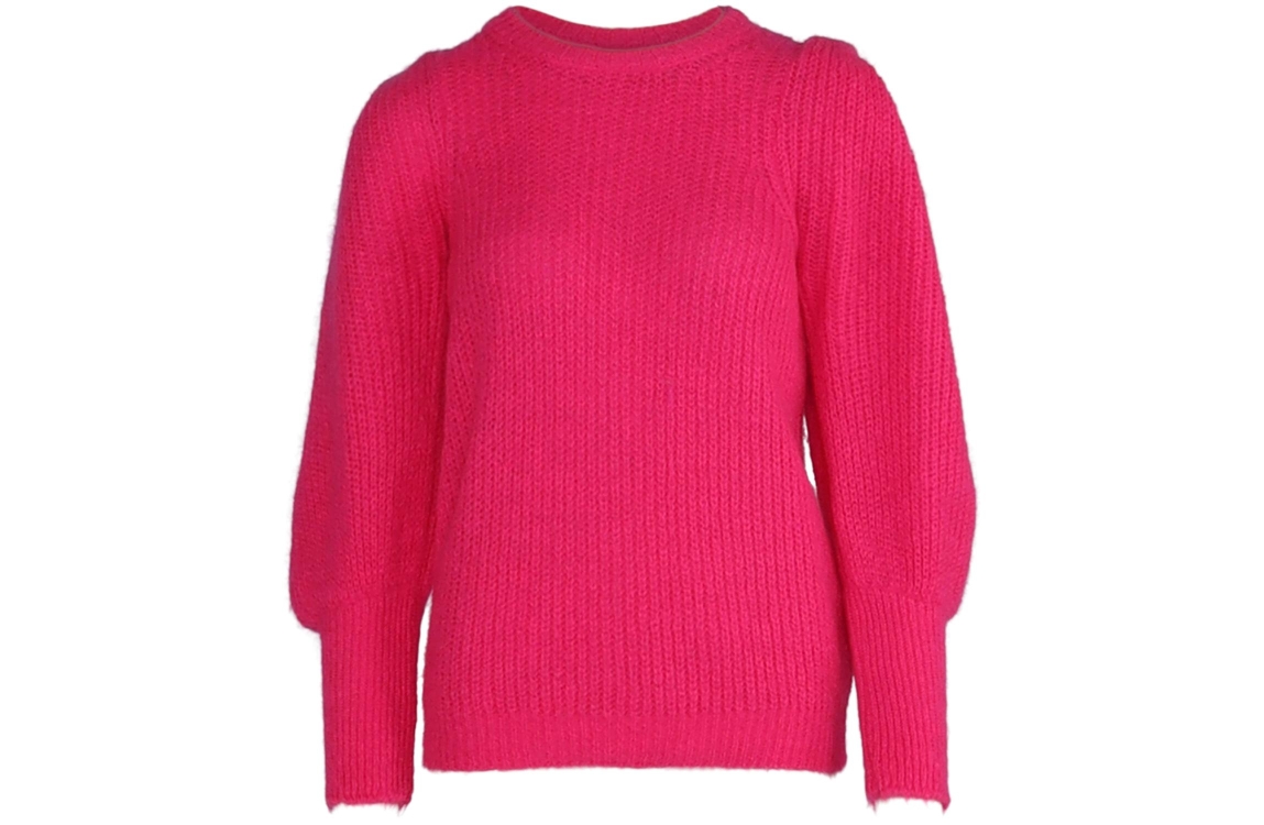 YOUR BEST LUXURY STYLE/8713782852690 mohair puff sleeve. Dit soepelvallende model heeft een ronde hals en lange pofmouwen. Deze roze trui van YBLS is uitgevoerd in een grofgebreid materiaal.