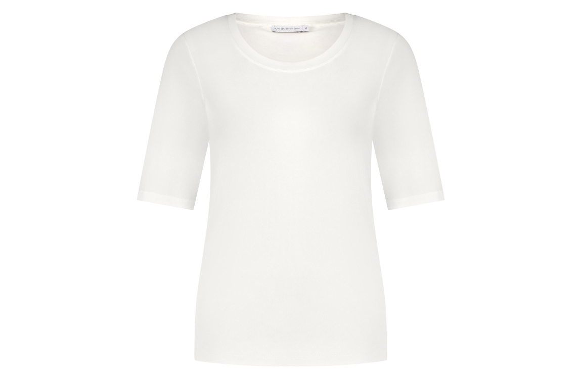 YOUR BEST LUXURY STYLE/8713782891033 t-shirt. Dit aangesloten model heeft een ronde hals en korte mouwen. Dit créme/witte shirt van YOUR BEST LUXURY STYLE is de perfecte basis top.
