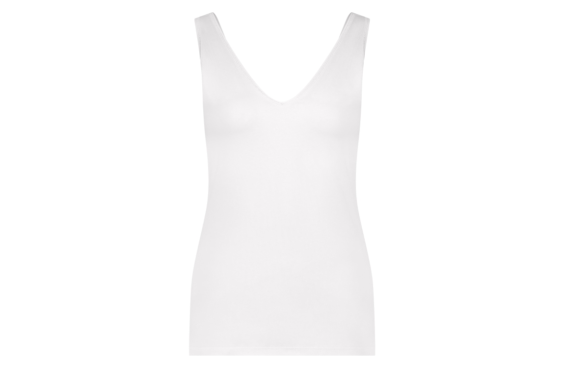 YOUR BEST LUXURY STYLE/8713782891033. Dit aangesloten model heeft een v-hals en is mouwloos. Deze witte tanktop van YOUR BEST LUXURY STYLE is afgewerkt met een lurex detail en is de perfecte basis tanktop.