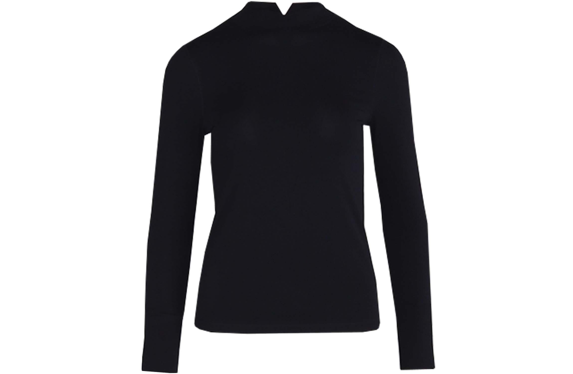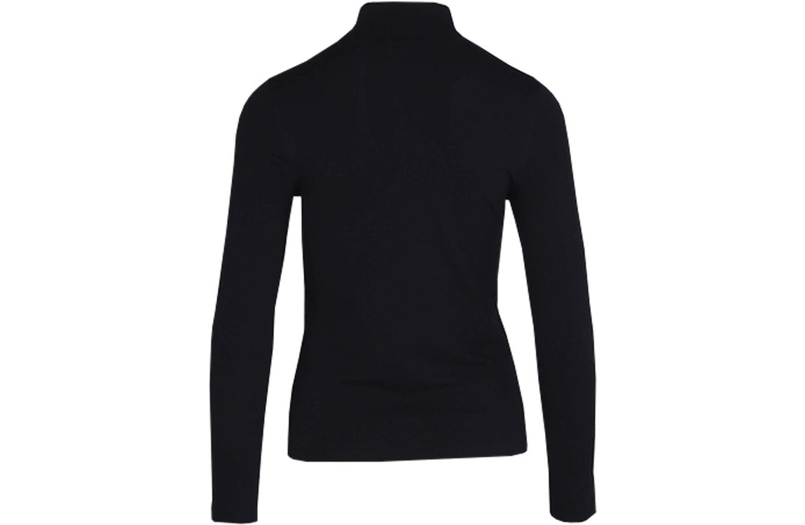 YBLS Turtle long sleeve YBL008272. Dit aangesloten model heeft een turtle col met een splitje. Deze donkerblauwe top van YOUR BEST LUXURY STYLE heeft lange mouwen met lange manchet en een split.