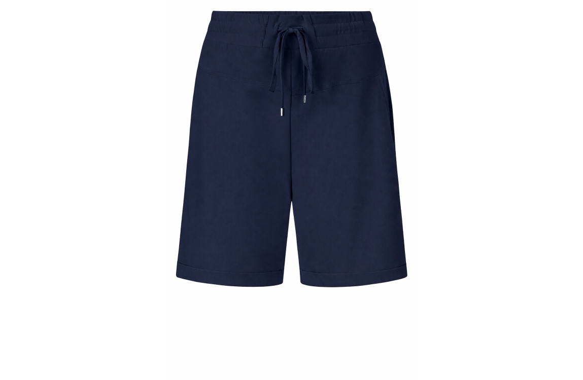 Zoso short Bowie. Dit rechtvallend model sluit door middel van een elastische boord met koord. Deze navy blauwe short van Zoso is voorzien van twee steekzakken aan de voorzijde en twee klepzakken met knoop aan de achterzijde.