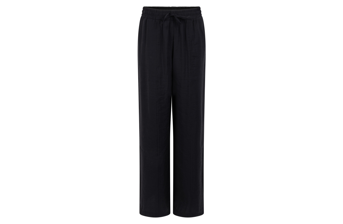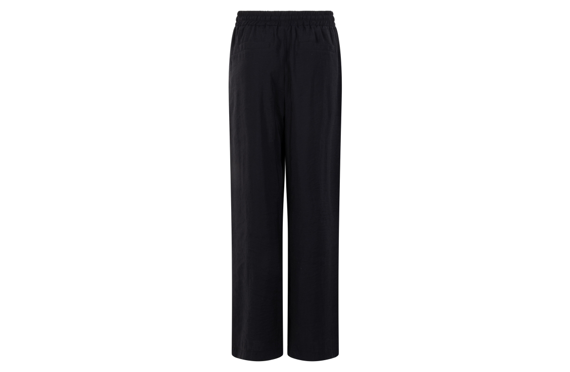 Zoso broek Chloe. Dit straight fit model sluit door middel van een elastische boord met trekkoorden. Deze zwarte broek van Zoso beschikt over twee steekzakken aan de voorzijde en twee paspelzakken aan de achterzijde.