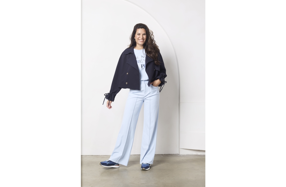 Zoso T-shirt Claire. Dit rechtvallend model is voorzien van een ronde hals en heeft korte mouwen. Deze lichtblauwe T-shirt van Zoso is bewerkt met een subtiele tekstopdruk.
