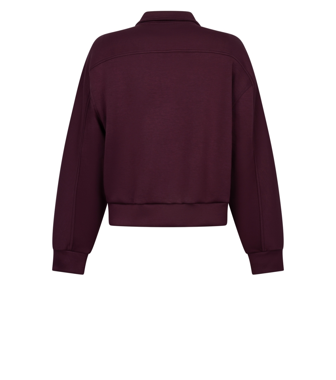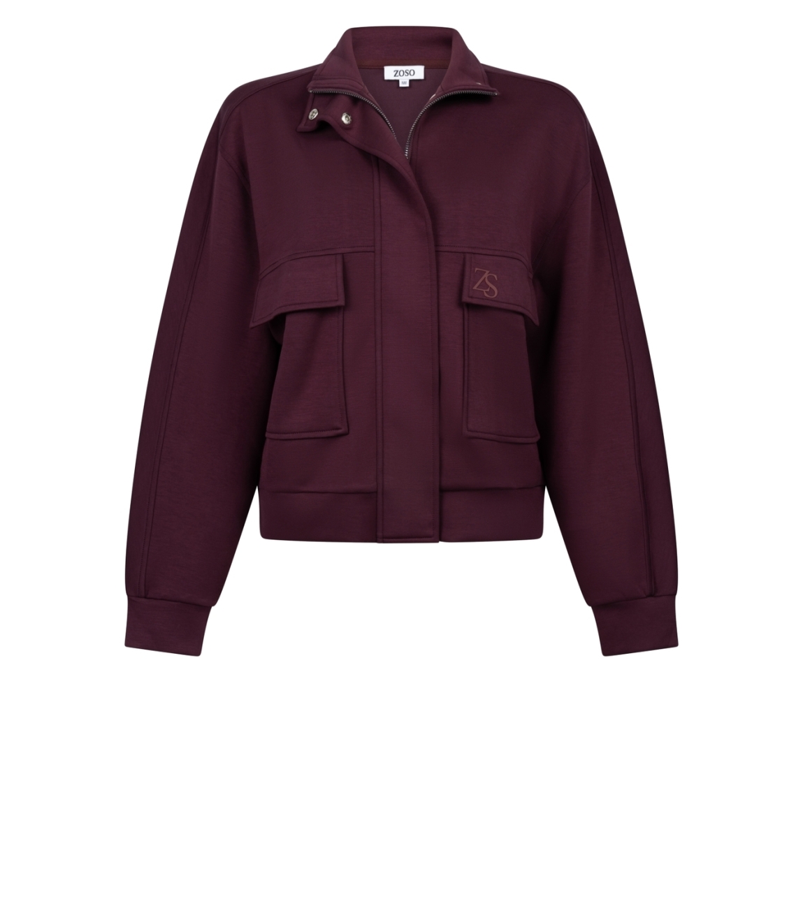 Zoso jasje Jacky. Dit rechtvallend model is voorzien van een opstaande kraag en heeft lange mouwen. Dit bordeaux rode jasje van Zoso sluit door middel van drukknopen en beschikt over twee klepzakken.