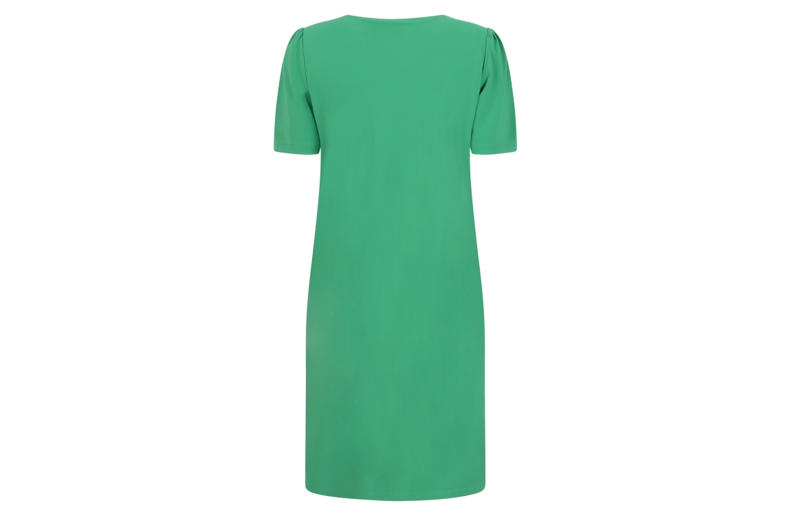 Zoso jurk Judith. Dit rechtvallend model is voorzien van een v-hals en heeft korte mouwen. Deze groene jurk van Zoso is uitgevoerd in een travel kwaliteit en beschikt over twee steekzakken.