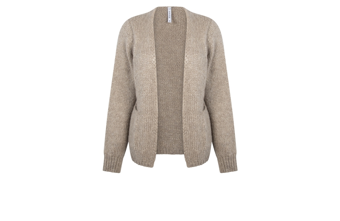 Zoso vest 245Lios. Dit regular fit model vest heedt een ronde kraag en lange mouwen. Dit greige vest van Zoso is geweven en beschikt over 2 steekzakken.