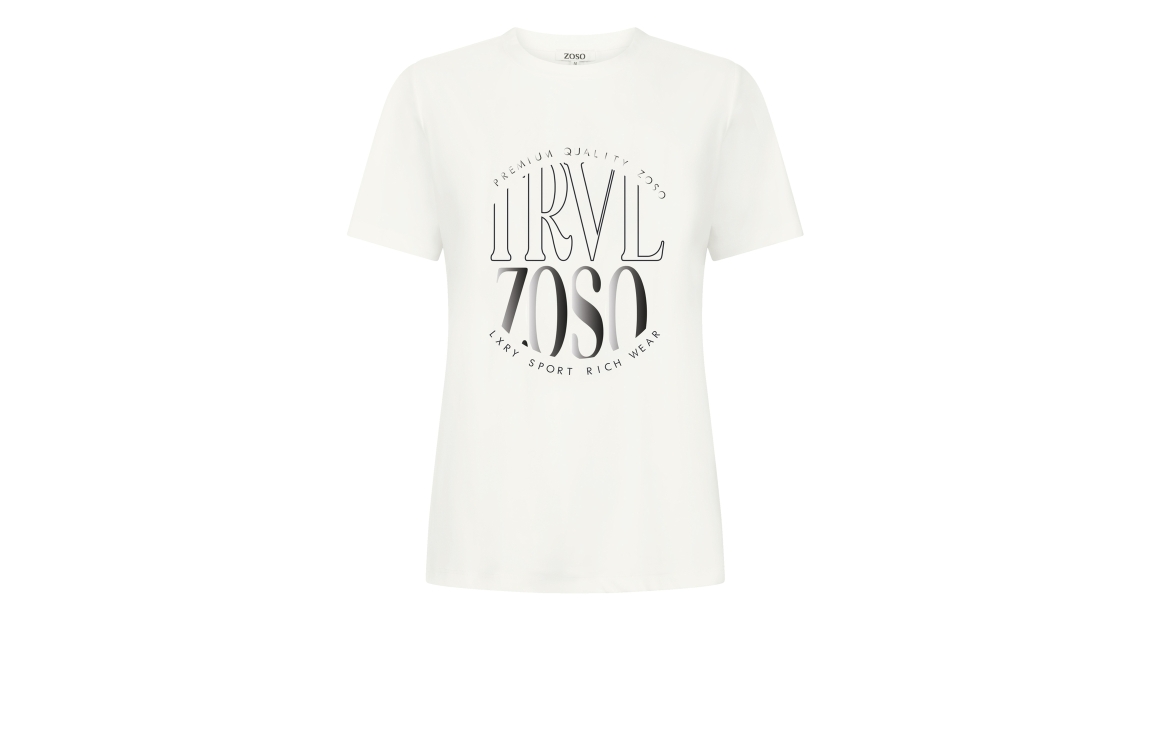 Zoso T-shirt Selma. Dit rechtvallend model is voorzien van een ronde hals en heeft korte mouwen. Dit witte T-shirt van Zoso is bewerkt met een subtiele tekstopdruk.