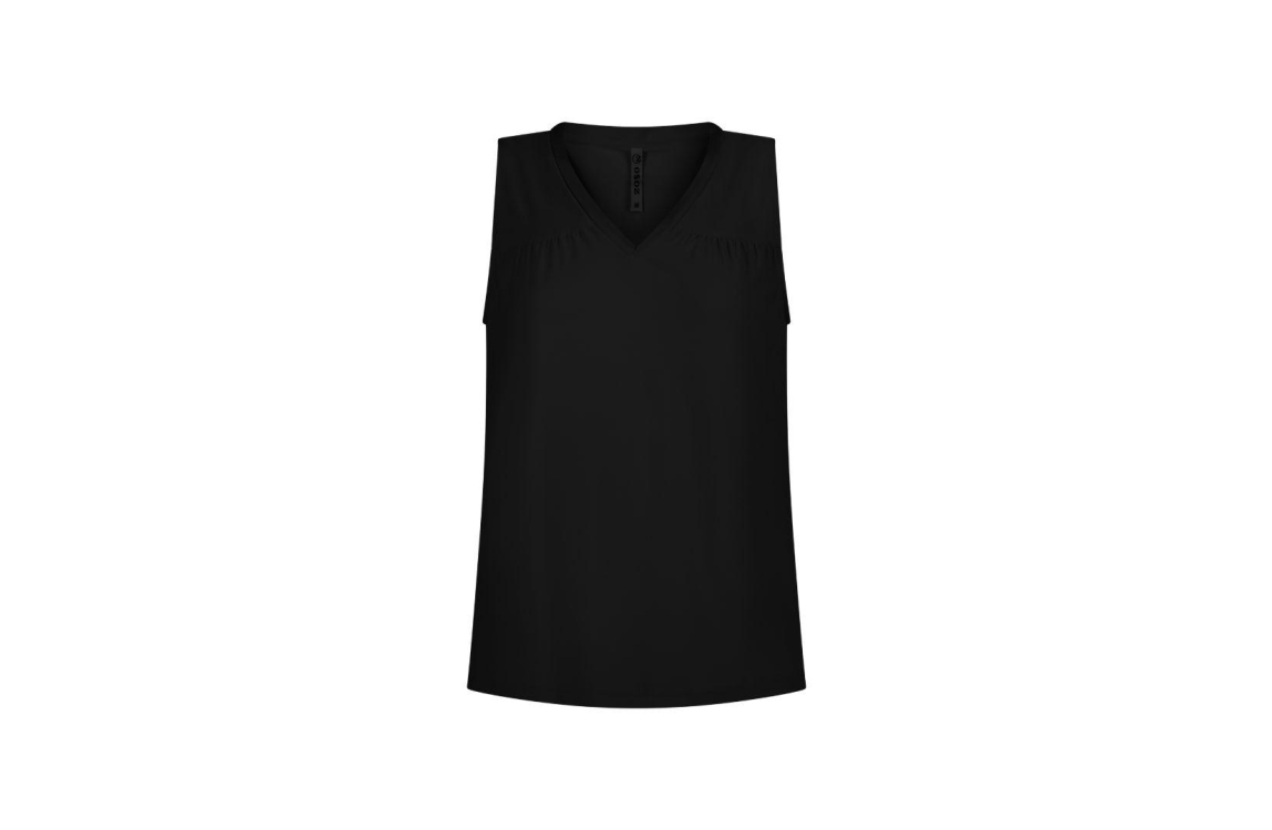 Zoso top Uma. Dit rechtvallend model is voorzien van een v-hals en is mouwloos. Deze zwarte top van Zoso is bewerkt met plooidetails aan de bovenzijde.