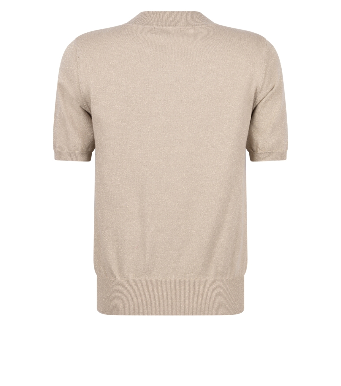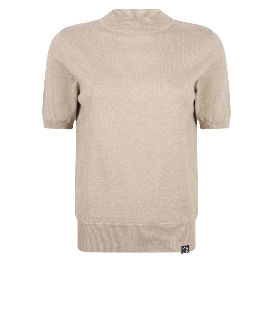 Zoso pullover 255Uma 1110. Dit rechtvallende model heeft een turtleneck en korte mouwen. Deze camelkleurige pullover van Zoso is all-over uitgevoerd met glitterlurex en afgewerkt met ribgebreide boorden.