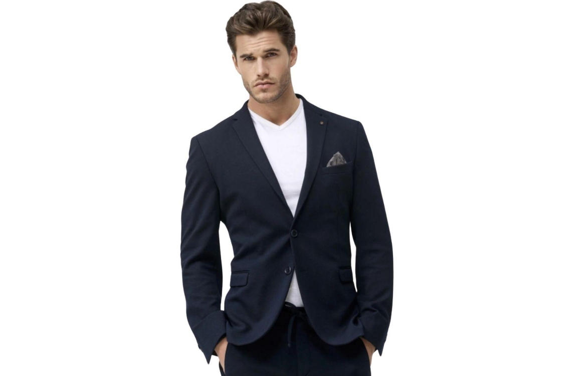 Zuitable colbert Dinorris 202641. Dit aangesloten pasvorm is voorzien van steekzakken en een borstzak. Deze donkerblauw colbert van Zuitable sluit door middel van knopen.