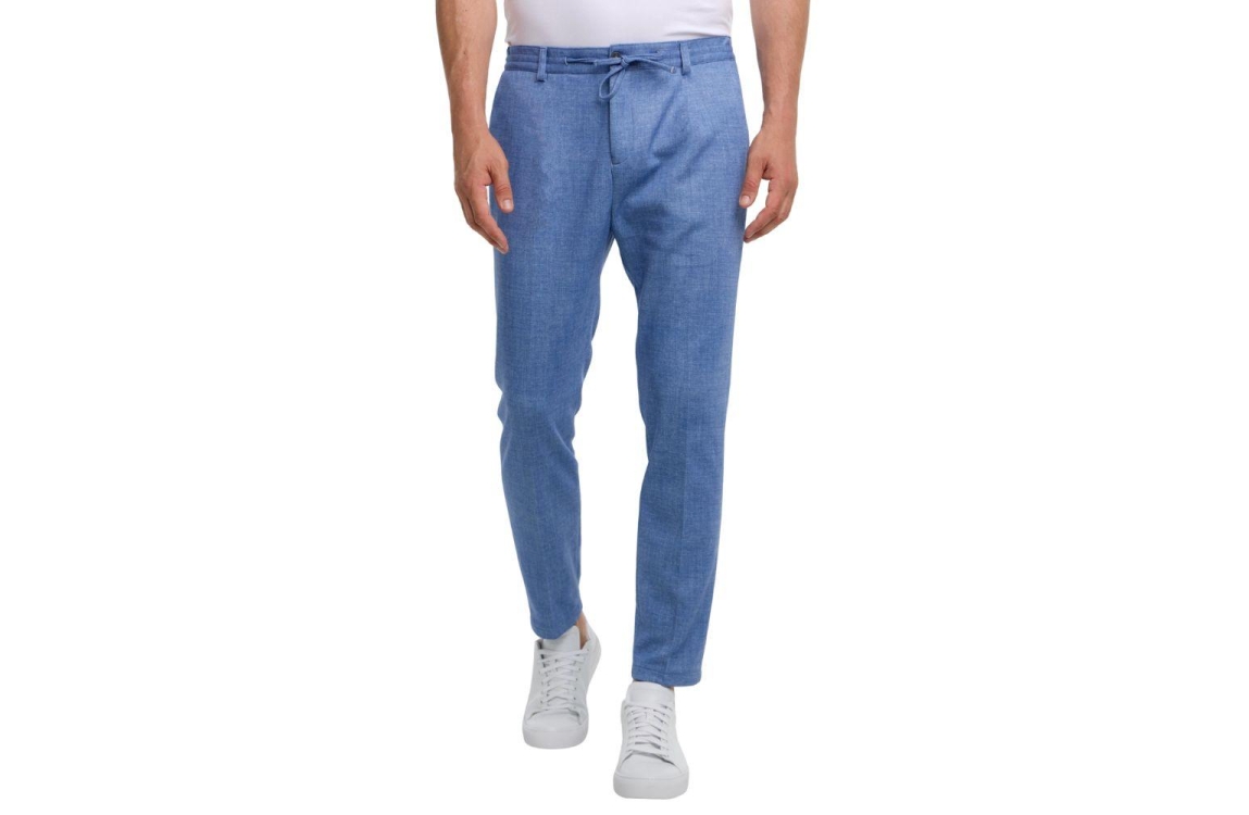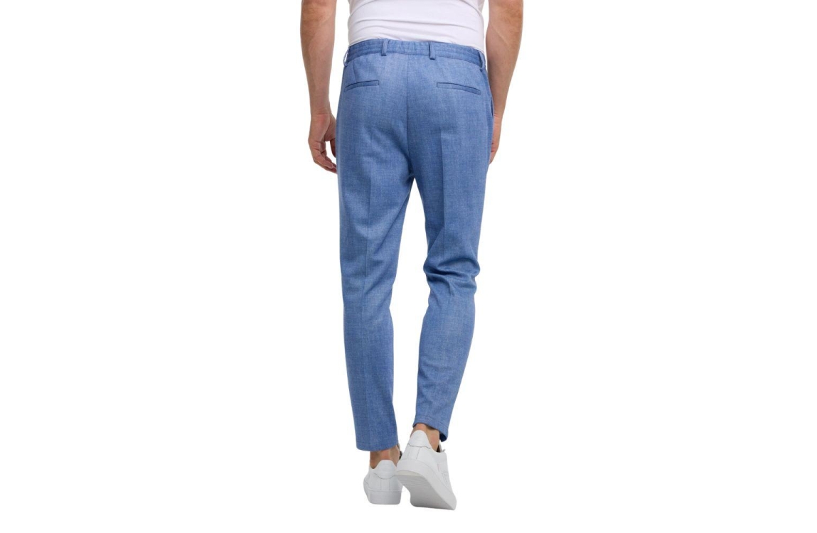 Zuitable pantalon 241665. Dit slim fit model sluit door middel van een knoop- en ritssluiting met trekkoord. Deze blauwe pantalon van Zuitable beschikt over twee steekzakken aan de voorzijde en twee sluitbare zakken aan de achterzijde.