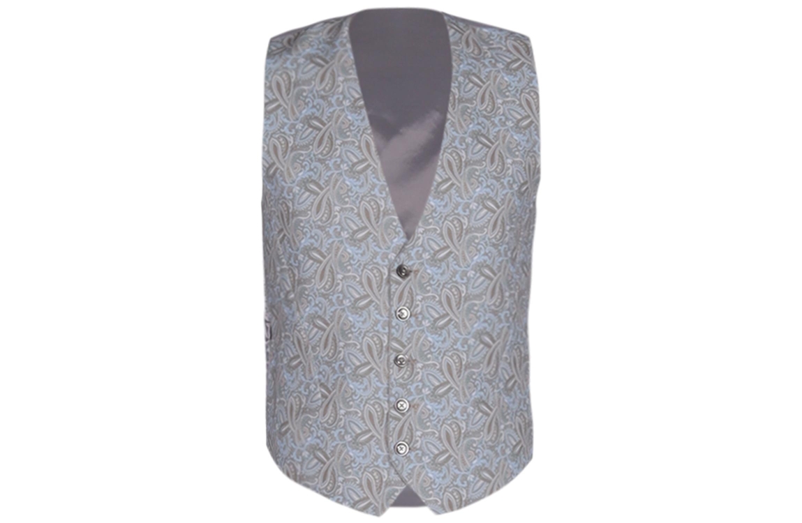 Zuitable gilet DiWesley. Dit slim fit model heeft geen mouwen en sluit doormiddel van knopen. Dit zandkleurige gilet van Zuitable is op 2 manieren te dragen, met een stippen patroon en een bloemen patroon. Verder beschikt dit gilet over 2 steekzakjes.