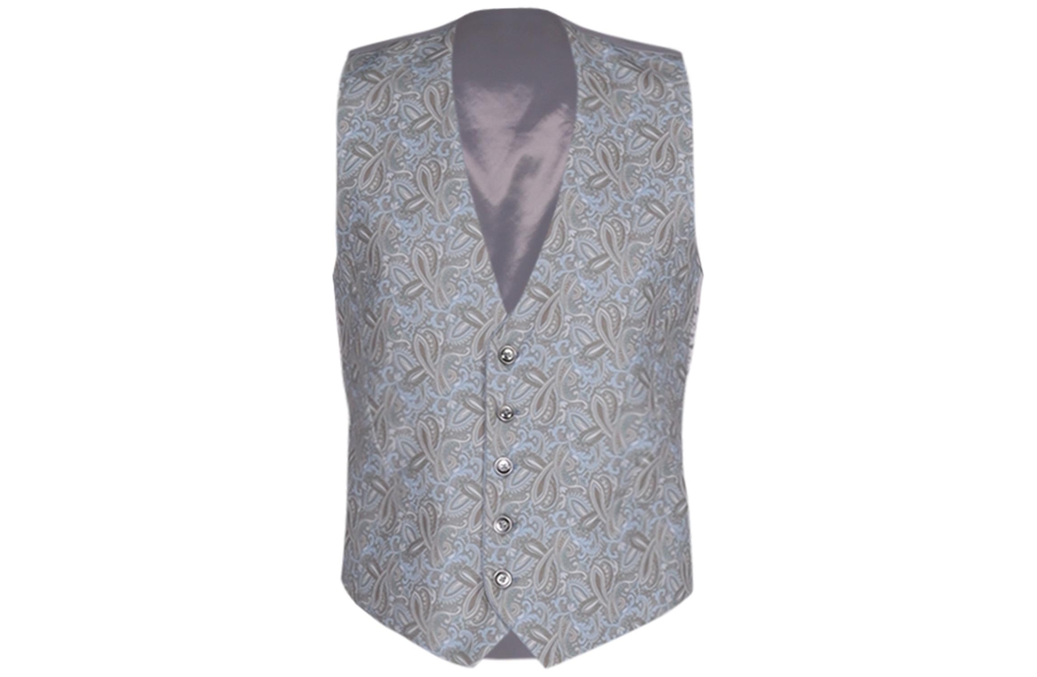 Zuitable gilet DiWesley. Dit slim fit model heeft geen mouwen en sluit doormiddel van knopen. Dit blauwe gilet van Zuitable is op 2 manieren te dragen, met een stippen patroon en een bloemen patroon. Verder beschikt dit gilet over 2 steekzakjes.